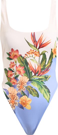 Luscious blooms tell an eye-catching style story for a high-leg swimsuit you'll definitely want on your packing list.