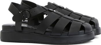 A timeless fisherman sandal is remagined in this leather version showcasing signature elements like a tartan-debossed footbed and logo-engraved rivets.