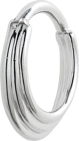 A layered silhouette gives dimension to this polished hoop earring crafted from 14-karat white gold.