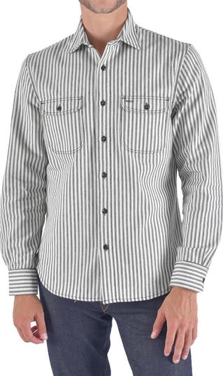 Designed to have the aged look of old-school military shirts, this button-up boasts a rich pigment dye and chainstitch runoff on the sides for heritage detail.