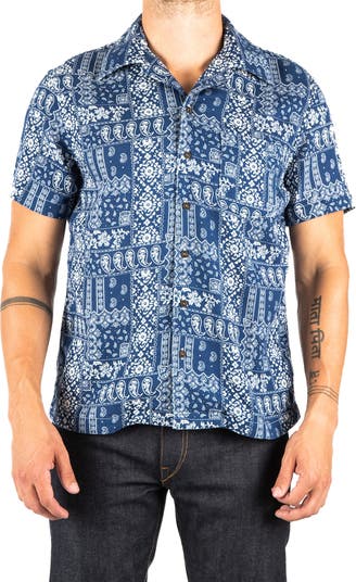 A random patchwork of bandana prints furthers the casual, relaxed feel of a shirt made of waffle-stitch cotton in a fit that's perfect for enjoying sunny days.