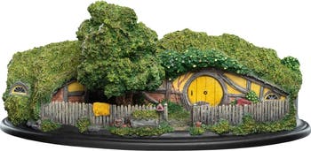 This gorgeous little environment is an exacting miniature replica of the movie set that can be visited at Hobbiton in Matamata, New Zealand. It was designed by the same artists and craftspeople who worked on the movie. In a hole in the ground there lived a hobbit. Not a nasty, dirty, wet hole. It was a hobbit-hole, and that means comfort. Bright round doors in summery hues dot the rich, grassy hillsides of Hobbiton like wildflowers. Behind each doorway, comfortably appointed burrows wind into earth each one home to a hobbit, or a family of the Shire’s rosy-cheeked little-folk. Every hobbit-hole is unique, expressing the personality of its inhabitants with colour, prettily adorned gardens, furniture, and the rustic debris of everyday life. In hues of soft butter, this dwelling stands apart from its neighbours on the southern edge of Hobbiton, its peaceful air disturbed only by the rare passing cries of a Baggins setting forth on some grand adventure. Features Sculpted by well-known Weta Workshop artists Ultra-detailed and realistic sculpts Made from high-quality Polystone 25 Gandalf's Cutting is an Open Edition piece Dimensions W 7.59Inch x H 3.54Inch x D 1.77Inch - Leonard Ellis – Sculptor and Model Maker, Weta Workshop Country of origin China