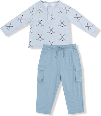 Your little one will play the day away in this comfy henley and coordinating cargo pants set made from stretchy jersey.