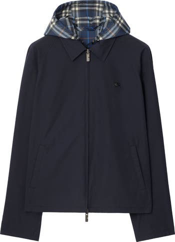 Offering two signature looks in one piece, this Harrington jacket made from cotton canvas reverses from a solid hue to House Check. A removable hood offers extra protection for changeable weather, while a tonal Equestrian Knight Design and B-cut zip pulls add Burberry flair.