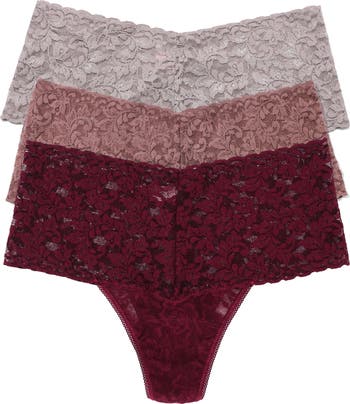 A sweet gift for yourself or someone else, these high-rise thongs made from stretchy lace are designed to feel great on and disappear beneath clothing.