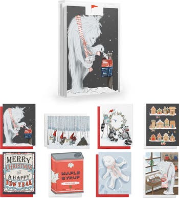This 8-pack of assorted greeting cards is elegantly illustrated by artist Ingrid Ramus, founder and owner of the Ramus & Co brand. Each card features a unique design: Card 1: Yeti mailing Christmas cards Card 2: Gnomes with a Christmas tree Card 3: Raccoons with a Christmas wreath Card 4: Assorted gingerbread houses Card 5: “Merry Christmas and a Happy New Year” Card 6: Maple Syrup “100% Pure Small Batch” Card 7: Yeti snow angel Card 8: Yeti baking All greeting cards are made in the USA on heavyweight uncoated and locally-sourced and manufactured card stock. Each card is accompanied by a hand-embossed envelope made with heavyweight 95lb paper and a peel-and-stick flap - no licking envelopes here! All Ramus & Co. greeting cards are printed on FSC and SFI certified paper sourced from a regional mill that harnesses 66% of its energy from on-site sustainable sources, such as emission-free hydroelectricity and biomass co-generation from wood waste. All 8 greeting cards come packaged as a boxed set. Husband-and-wife team Calvin and Ingrid Ramus founded Ramus & Company in 2019, in New England, USA. Ingrid, the creative designer behind the brand, originates from Mexico, where she cultivated her skills in fashion and textile design. Drawing from her unique and inquisitive perspective on preppy style, Ingrid prolifically designs whimsical yet classic stationery and lifestyle items.