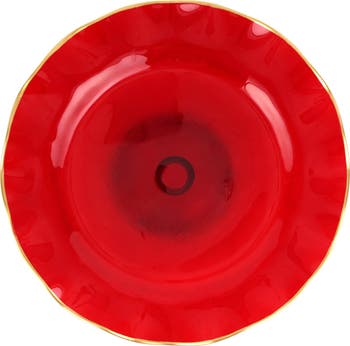 Let the festivities begin with this red-glass cake stand styled with fluted edges and gold trim so it brings a pop of color and plenty of joy to your holiday home.