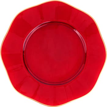 Let the festivities begin with this glass serving plate finished in a cheerful red hue and with gold trim so it brings a pop of color and plenty of joy to your holiday home.