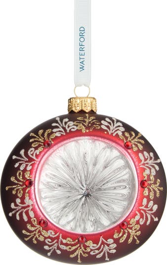 Bring the magic of the holiday season into your or your loved one's home with this sparkly, handcrafted ornament made from light-catching glass. This festive bauble is suspended from a branded ribbon.