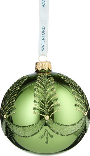 Bring the magic of the holiday season into your or your loved one's home with this sparkly, handcrafted ornament made from light-catching glass. This festive bauble is suspended from a branded ribbon.