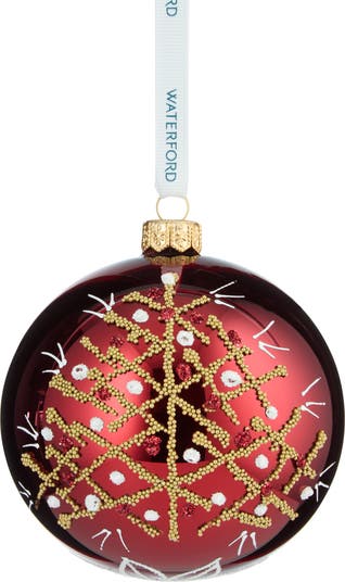 Bring the magic of the holiday season into your or your loved one's home with this sparkly, handcrafted ornament made from light-catching glass. This festive bauble is suspended from a branded ribbon.