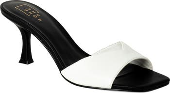 A notched top strap stretches across this sleek and simple faux-leather mule perfect for celebrations and beyond.