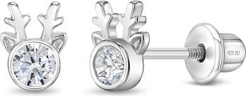 Add some festive magic to the holiday season with these adorable reindeer earrings for little girls! Made from 925 sterling silver, a hypoallergenic material for sensitive ears, these earrings feature a playful reindeer design with a sparkling clear cubic zirconia stone at the center, bringing a touch of holiday sparkle. The safety screw back closures ensure a secure and comfortable fit, making them fun for all the holiday festivities. Whether as a fun accessory for Christmas outfits or a special gift, these reindeer earrings are sure to spread joy and holiday cheer!
