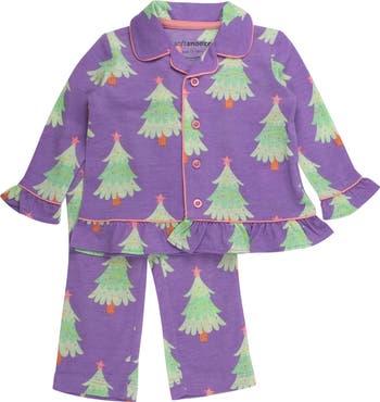 RuffleButts Ruffle Flare Pajama Set is the perfect choice for girls who want both style and comfort in their sleepwear. This trendy girls pajama set features a vibrant holiday pattern that stands out in any sleepover. The flare sleeves add a touch of elegance, while the ruffle details on the pajamas bring a playful flair to bedtime routines. Crafted from plain woven fabric, these pajamas offer a seasonless quality, making them suitable for year-round use. The stretch material ensures a comfortable fit, allowing for plenty of movement throughout the night. The top is designed with a button placket, making it easy to put on and take off, which is ideal for girls who value both comfort and independence. The elastic waistband on the pajama pants guarantees a snug fit that stays in place, ensuring comfort all night long. Ideal for everyday use or special pajama parties, the Ruffle Flare Pajama Set combines contemporary style with practical features, making it a must-have in any girl's wardrobe.