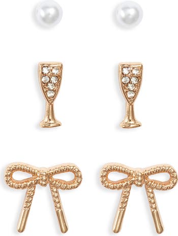 Sparkles and faux pearls bring celebratory style to this set of stud earrings ready to shape new stacks.