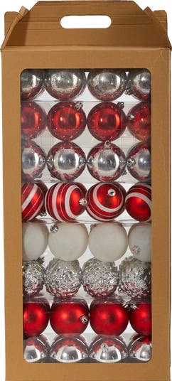 Get into the holly jolly spirit this holiday season with an easy, go-to set of shatterproof Christmas tree ornaments. Perfect for accenting and filling in bare spaces in Christmas trees, this set of 64 (80mm) holiday-inspired ornaments comes in bright seasonal hues and reflects a glass-like quality - without the fear of damage should they fall or drop. Arriving in a reusable box for continual seasonal use and storage, they're perfect for mixing and matching with other similar colors and themes.