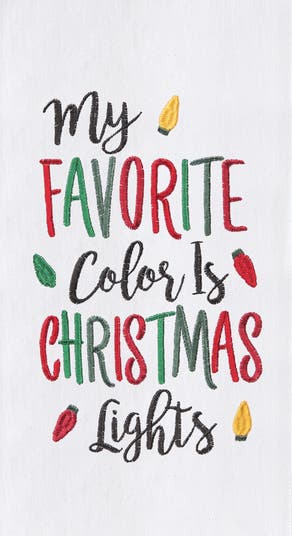 Holiday Themed "My Favorite Color is Christmas Lights" Sentiment Featuring Bulb Lights Flour Sack Kitchen Towel 27L x 18W in.