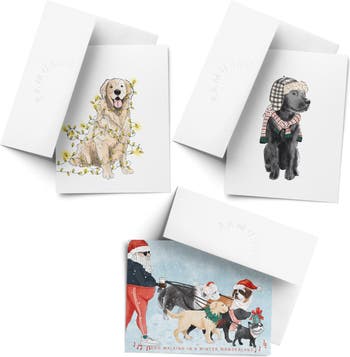 Holiday Winter Card Pack (3ct, Assorted) Lit Retriever, Santa Dog Walking, Candy Cane Lab