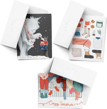 Holiday Winter Card Pack (3ct, Assorted) Yeti Mail, Cozy Wishes, Winter Essentials