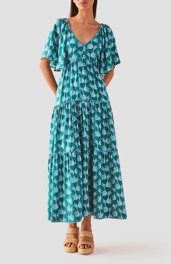 Framed by flowing sleeves and an open neckline, this summer-ready maxi features a soft silhouette with a cascading tiered skirt that creates a gorgeous shape. Pockets add even more functionality to this versatile piece, blending beauty and purpose with every wear.