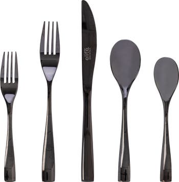 Gibson Elite Holland Road 20 Piece Black Stainless Steel Flatware Set, Alternate, color, Black