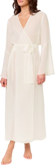 A long, drapey robe is framed by flouncy bell sleeves and cut from airy sheer chiffon.