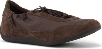 Complete your casual look with the sporty style of this suede-trimmed flat featuring adjustable elastic laces.