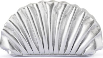 Voluminous pleats and a seashell-inspired silhouette bring artful dimension to a metallic faux-leather clutch featuring an optional chain strap for hands-free wear.