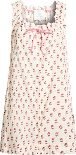 Naturally breathable and lounge-worthy, this organic-cotton blend nightgown is detailed with a contrasting ribbon and delicate eyelet trim.