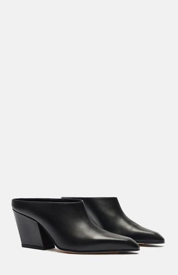 Handmade in Italy by experienced craftsmen, the 'Holly' sabot combines a pointy last with a Texan-inspired high block heel. Its minimalist design effortlessly transitions from day to night, with an 8 cm heel that elongates the leg while ensuring comfort.