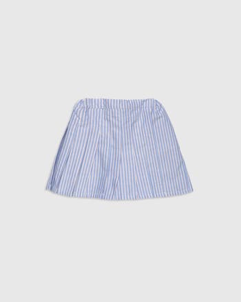 Our Holly Skort is designed to elevate any outfit through thoughtfully crafted details and a timeless stripe. Features pleats, hidden pockets, adjustable elastic waist for a comfortable fit, and full shorts with pleated skirt covering. Made from 100% Cotton. Made in Portugal.
