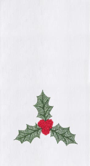 Featuring a single holly berry and leaves, this beautiful French knot Holly Kitchen Towel is in the center of a crisp white background. The delicate design brings a classic holiday look to any kitchen, perfect for celebrating the season. Both functional and decorative, this towel adds a touch of festive elegance to any kitchen.