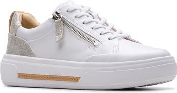 A sleek side zipper brings contemporary attitude to this leather platform sneaker finished with subtle metallic accents for subtle street-ready style.