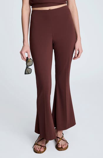A supersmooth Hollywood waist tops trim and stretchy pull-on pants fashioned with kicky flared legs.