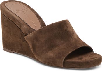 A hearty wedge lofts this suede sandal that adds height to your everday looks.