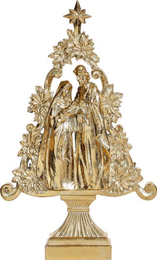 This beautiful Holy Family tree depicts Joseph, Mary, and baby Jesus surrounded by radiant leaves and crowned with a shining star. Its golden finish symbolizes divine light and eternal love. A perfect reminder of faith, unity, and the sacred joy of Christmas.