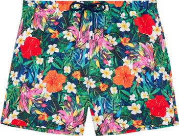 The Peacock Beach Boxers are perfect for comfortable, relaxed summer days. Their loose fit and mid-thigh length offer a modern, flattering silhouette while ensuring great freedom of movement. Inside, the integrated mesh briefs provide soft support and allow the skin to breathe. Its vibrant print of peacocks and colorful flowers evokes the energy and joie de vivre of Sicily.