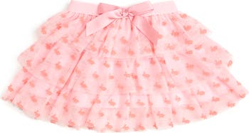 Watch out for extra hops and twirls! This bouncy, tiered tutu skirt is super soft and fun, featuring a whimsical flocked bunny print and topped with a sweet satin bow for extra charm.