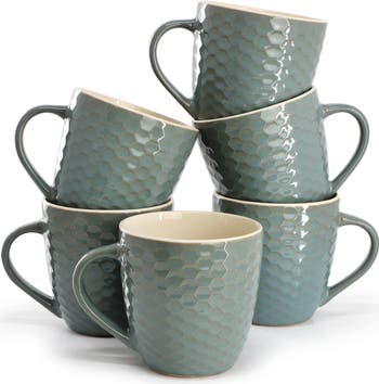 The Honeycomb mug set by Elama will make you feel closer to nature with each sip of your favorite drinks. These stylish cups feature a honeycomb debossed design dressed in earthy tones, laying underneath a sleek glossy finish. Made of durable stoneware, these captivating beauties will add charm and flair to your favorite drinks!This set includes :Six 15 oz mugs, each measuring in at 5.5" x 4" x 3.5" (0.75 lbs.)