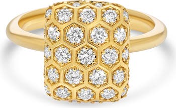 Organic-inspired geometry brings life to this 18-karat-gold ring buzzing with the shine of inset diamonds.
