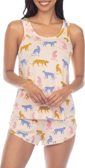 Streamline your evening routine with this soft jersey pajama set featuring a relaxed-fit tank and matching dolphin-hem shorts.