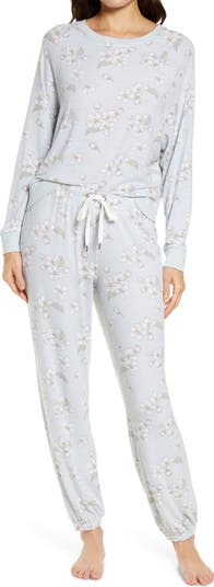 Lightweight jersey brushed for enhanced softness promises sweet dreams (and cozy lounge seshes) in these patterned PJs with a raglan-sleeve top and matching joggers.