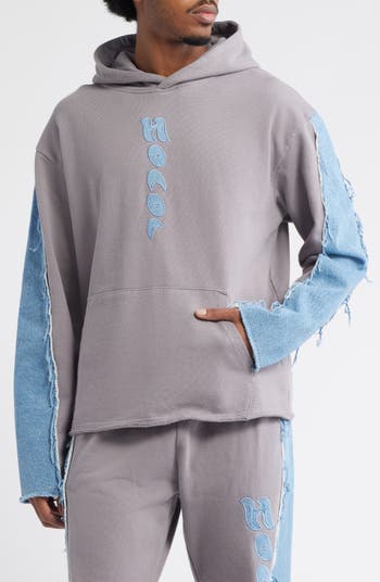 A tactile tonal logo keeps the branding low-key on this worn and faded hoodie cut to envelop you in the warmth of its cozy cotton fleece.
