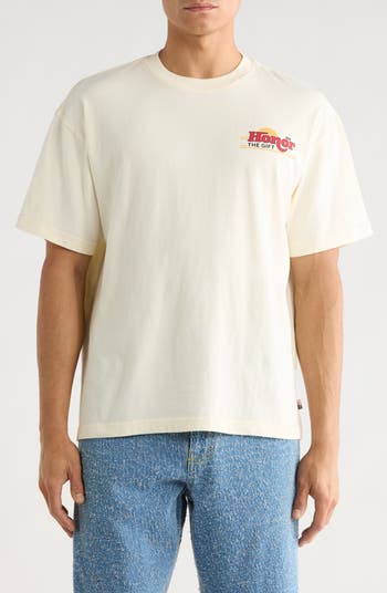 Keep the vibes casual in this all-cotton T-shirt featuring a branded graphic.