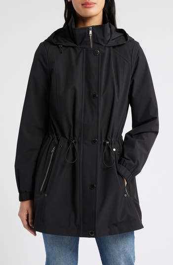 Toggles tighten the hood and waist of a lightweight jacket closed with logo snaps and popped with zipped pockets to keep your essentials secure.