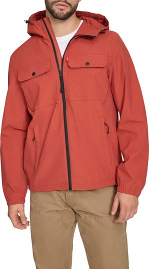 Keep the rain at bay while heading to work or running errands in this hooded rain jacket with a generous fit for layering and front zip pockets to keep your essentials secure.