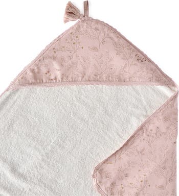 Keep your little one cozy and dry after bath time in a hooded towel composed of absorbent cotton terry.