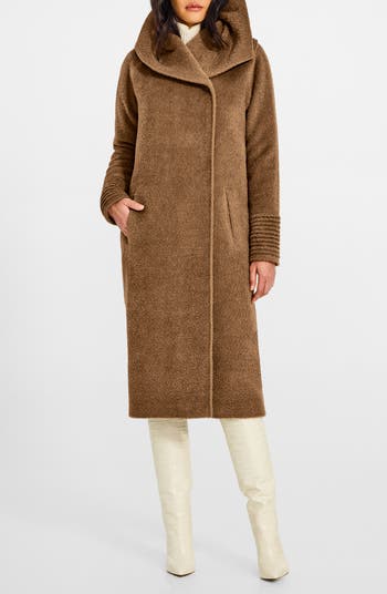 Signature ribbed cuff details authenticate a striking coat designed with a roomy hood and crafted in a toasty blend featuring wool and alpaca.