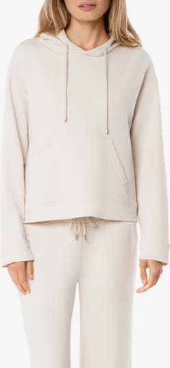 Designed for life on the go, this luxurious knit hoodie is the ultimate travel companion. A softly structured silhouette with ribbed finishing keeps it polished, while the plush fabric and roomy pocket bring all-day comfort. Layer it over your favorite resortwear for relaxed sophistication wherever you land.