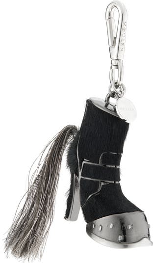 Suspended from logo-engraved silvertone hardware, this boot charm fashioned from Italian calf hair adds a luxe-punk touch to your favorite bag or key ring.